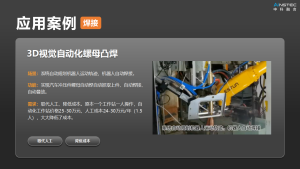 顺利获得结合3D相机硬件与焊接软件,英国上市公司365智能免示教焊接解决方案实现了高效、精确的自动化焊接,最大限度地减少了人工操作和人工误差。3D相机负责给予精准的视觉数据,焊接软件则顺利获得强大的计算与优化能力,自动生成焊接路径和参数,确保焊接过程的稳定性与高质量。